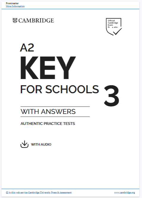 本套练习包含四套完整的模拟试题,均源自剑桥英语五级证书考试(KET)校园版(A2 Key for Schools)。学生可独立完成练习,也可在教师指导下进行。剑